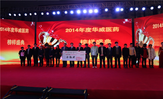 华威医药这个平台现在承载了很多人的期望、梦想和未来。华威取得今天的成就,离不开优秀华威人的共同努力!他们专业、博学、睿智、勤勉,他们满怀对改变的期待,对华威的信心和热爱,他们与华威医药风雨同舟,帮助华威攀上一个又一个新高度。在年会进行中,隆重举行了“2014年度华威医药榜样盛典”颁奖活动,对华威医药2014年度的优秀新员工、优秀员工、劳动模范以及优秀团队进行了表彰和颁奖,他们一年来的不辞劳苦和付出,迎来了今天沉甸甸的收获和荣耀时刻!