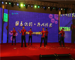 2015年2月8日,华威医药“因为你们•所以精彩”新春联欢晚会在南京金奥费尔蒙酒店隆重举行。下午16点整,南京市栖霞区委领导、江苏生命科技创新园管委会领导、江苏高科技投资集团领导、礼来亚洲基金领导及华威医药全体同仁共250余位嘉宾出席华威医药年度盛宴。在晚会主持人的新春祝福声中,与会嘉宾共同观看了“我们的2014”开场视频,共同分享和回顾了华威医药2014年度在各方面取得的优异成绩和精彩瞬间。