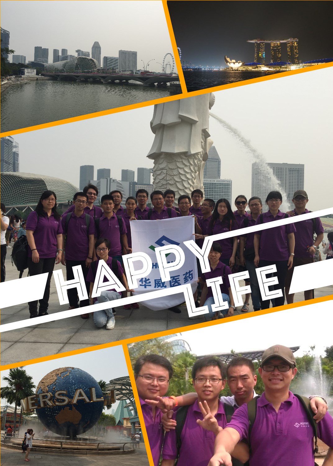 2015年10月20日,华威医药组织的2014年度第一批优秀员工出国旅游开启序幕。这为期5天的新加坡行程,华威人游览了鱼尾狮公园、滨海湾公园、花芭山、名胜世界、节庆大道、海洋馆、时光之翼等景点。夜晚时分,大家沿新加坡河顺流而下,一河两岸,夜色下高楼大厦灯火璀璨,闪烁与耀眼的霓虹灯把城市的夜晚装点得缤纷多彩,狮城的夜景尽收眼底。