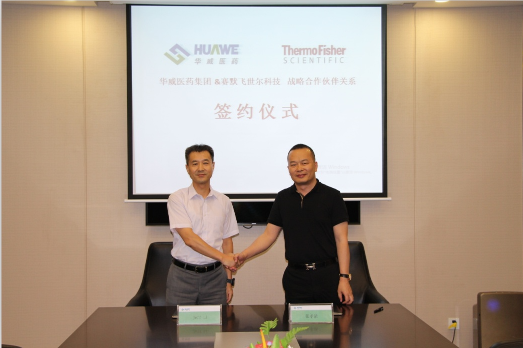 2017年8月16日,中国南京,华威医药集团与科学服务领域的世界领导者赛默飞世尔科技签署战略合作伙伴关系协议,双方将携手在实验室整体解决方案、生命科学仪器、共建实验室、成果转化等方面开展合作。