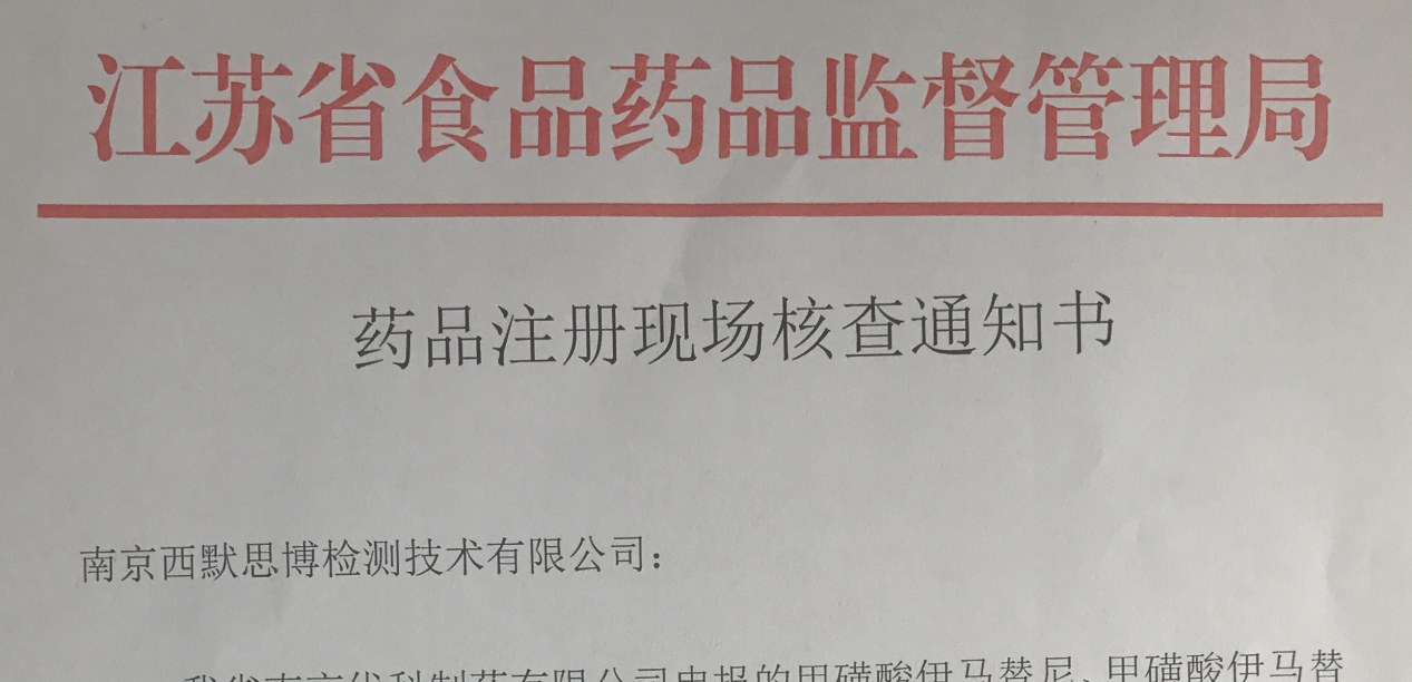 2017年11月1日,华威医药集团全资子公司南京西默思博检测技术有限公司负责完成的甲磺酸伊马替尼片BE试验的生物样品检测工作顺利通过江苏省食品药品监督管理局现场核查。此次核查是根据CFDA《药品注册现场核查管理规定》及有关规定,由江苏省食品药品监督管理局注册处现场核查组一行4人,对我司进行了药品注册现场检查。