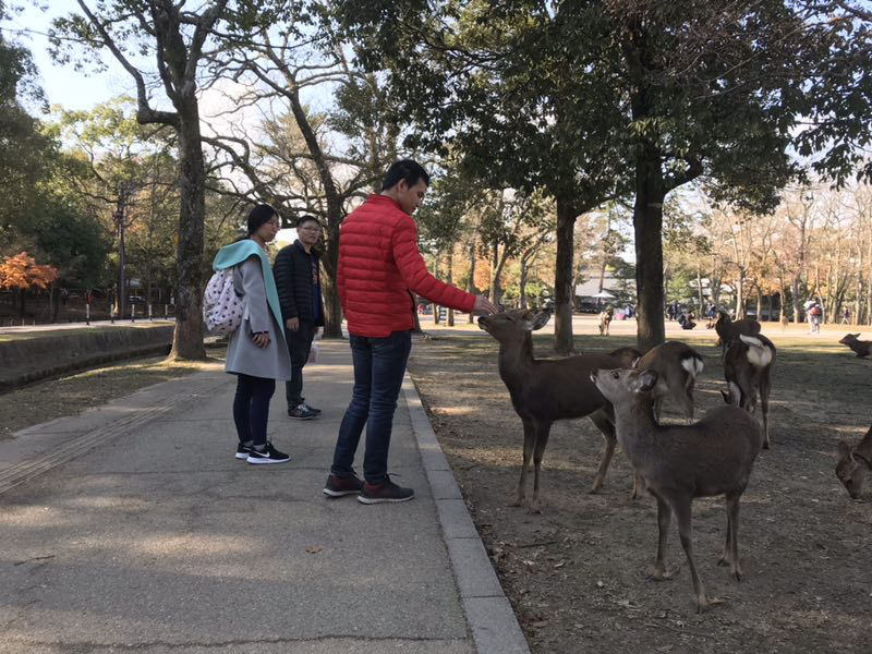 华威小伙伴们最后一站便是日本历史和文化的发祥地之一——奈良,神鹿公园就是其中最著名的景点。这里的独特之处是因为园中有1200多只梅花鹿,漫步园中,总是有神鹿相伴,数百年老枫树,虬枝遒劲。