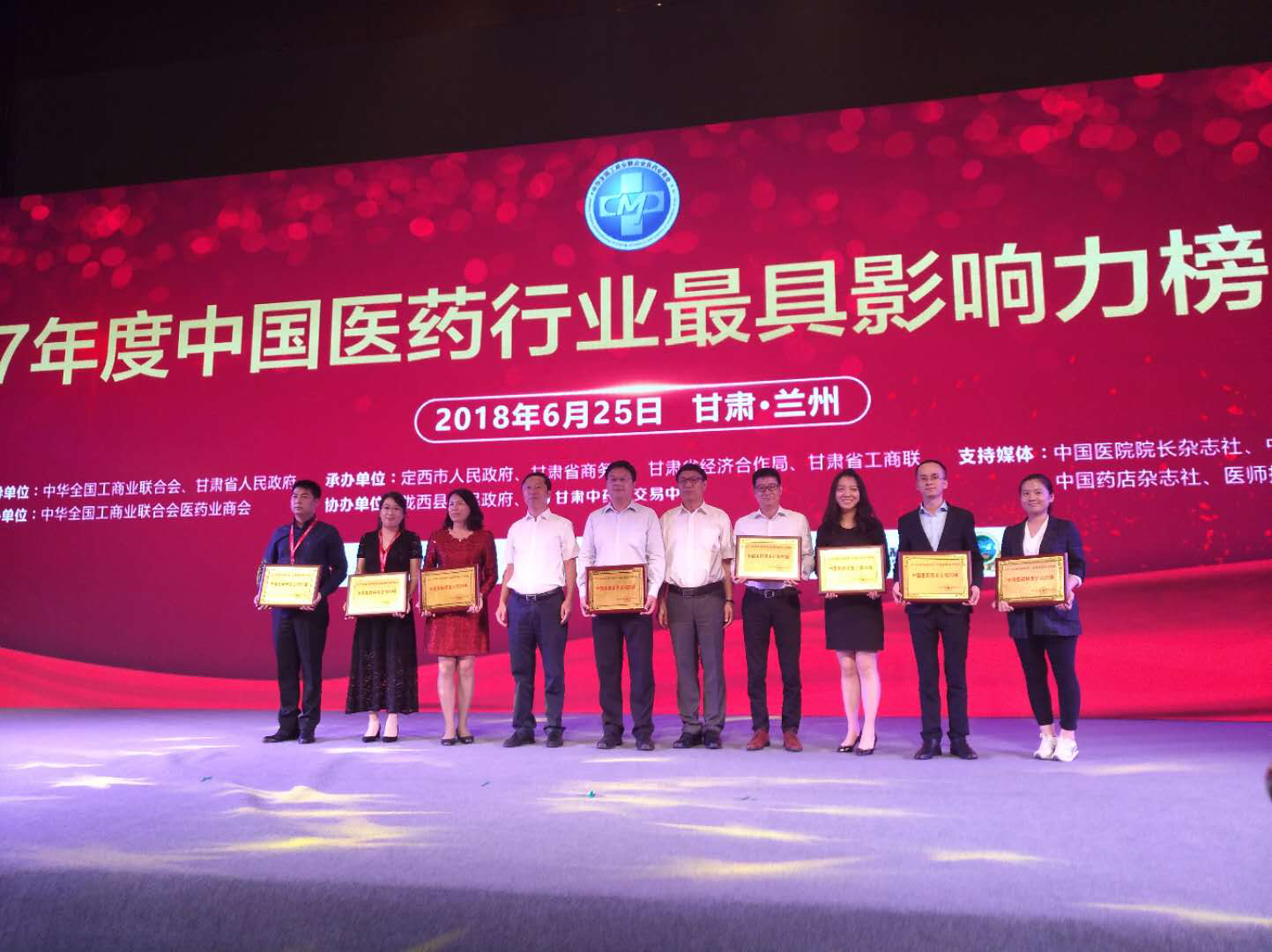 2018年6月25日,由全国工商联医药商会和甘肃省人民政府举办的“2017年度中国医药行业最具影响力榜单发布会暨2018中国(兰州)医药产业发展高峰论坛”在兰州盛大开幕。来自全国多个省市的专家、名流,深度探讨中国药品研发创新的未来格局。本次大会就上一年度的行业发展信息进行总结梳理并向社会公开进行榜单发布,揭晓了行业瞩目的2017年度的中国医药工业百强、中国医药行业成长50强、中国医药研发(外包)20强等共十项榜单。本次高峰论坛邀请了国家卫健委、国家药品监督管理局、国家药品审评中心有关领导和中国工程院院士莅临会议,并就当前国家医改政策,“互联网+医疗健康”,优化药品注册审评审批有关新政,药品审评审批制度改革,仿制药质量和疗效一致性评价,增强文化自信,推进中医药事业创新发展等企业关注的热点问题进行解读。华威医药集团副总裁桂尚苑先生代表公司出席了此次会议并接受颁奖。