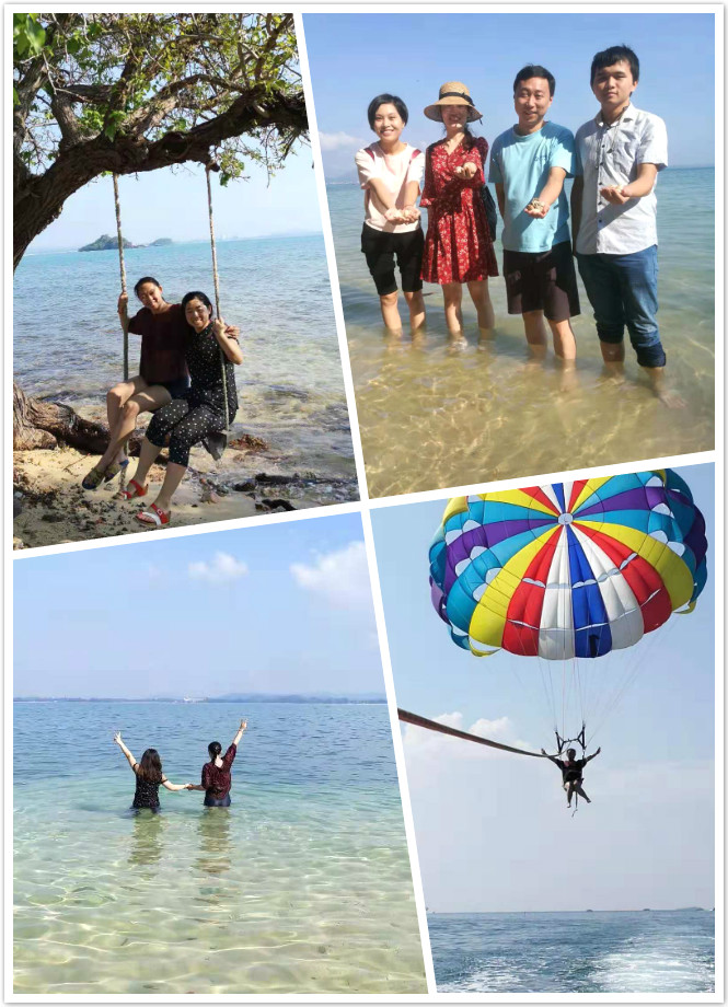 在泰国除了各式各样的寺庙建筑,海岛也是绝不能错过的。本次优秀员工之行来到了以沙子闻名的沙美岛。这里的沙子黄里透白,如面粉一样细嫩,铺成又长又宽的沙毯,仿佛为太平洋镶上了金色的花边一般。小伙伴们在沙美岛上欣赏绮丽的星空朗月,参加当地特色的篝火晚会,体验刺激的海岛游乐项目,度过了一段难忘的美好时光。