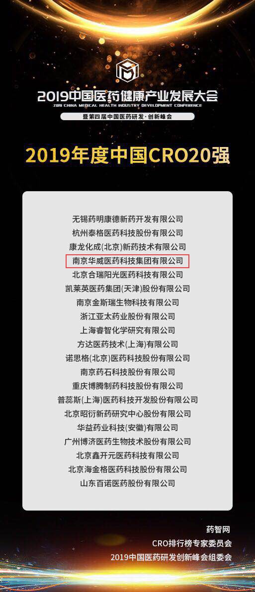 超赞!2019年度中国CRO企业20强榜单新鲜出炉