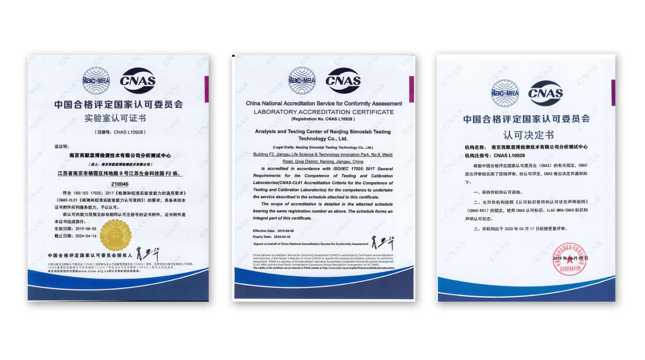 中国合格评定国家认可委员会(英文缩写为:CNAS)是由国家认证认可监督管理委员会批准设立并授权的国家认可机构。是我国最具权威的实验室评审机构,其审核时间长、通过难度大、认可质量严苛,在行业内获得其认可的更是屈指可数!获得 CNAS 认证,则代表该检测结果会被全球所有的会员检测机构所承认。