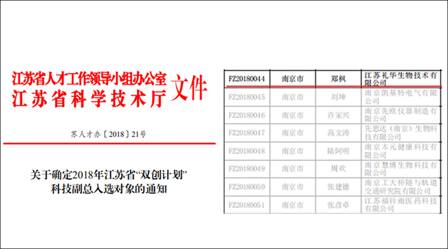 7、华威医药郑枫博士入选江苏省双创计划-科技副总