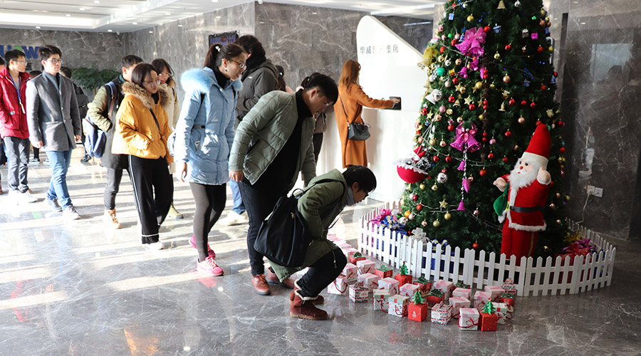 9、美丽的彩灯高高挂起,闪烁亮丽的圣诞树向你问好祝福。在这个全年最欢乐的日子里,华威用一颗颗寓意平安快乐的“圣诞果”,为每一位华威人送去最真挚的节日祝福。