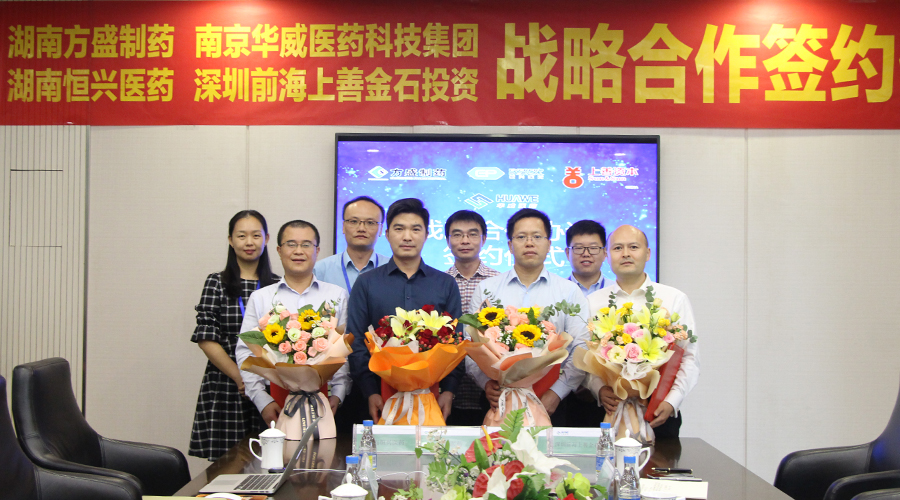 华威医药集团总经理黄辉、湖南方盛制药股份有限公司董事长张庆华、深圳前海上善金石投资管理有限公司总经理戎涛、湖南恒兴医药科技有限公司总经理郭建军等出席了签约仪式。合作各方将充分发挥自身资源优势、多维度聚能发展、携手并进、合作共赢。