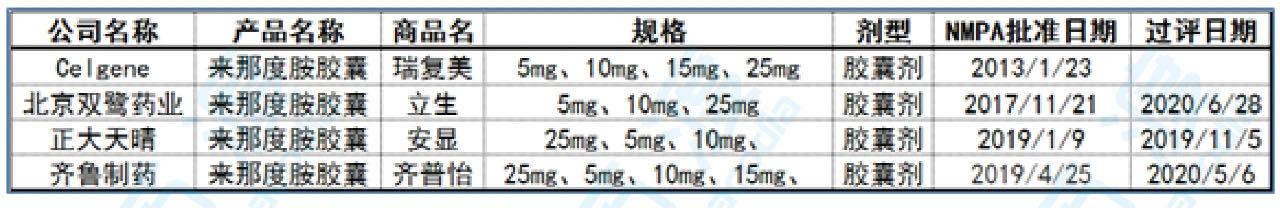 2020年6月28日,北京双鹭药业收到国家药品监督管理局核准签发的关于“来那度胺胶囊”的《药品补充申请批件》,该公司来那度胺胶囊通过一致性评价,成为继正大天晴和齐鲁制药之后,国内第3家过评的企业。
