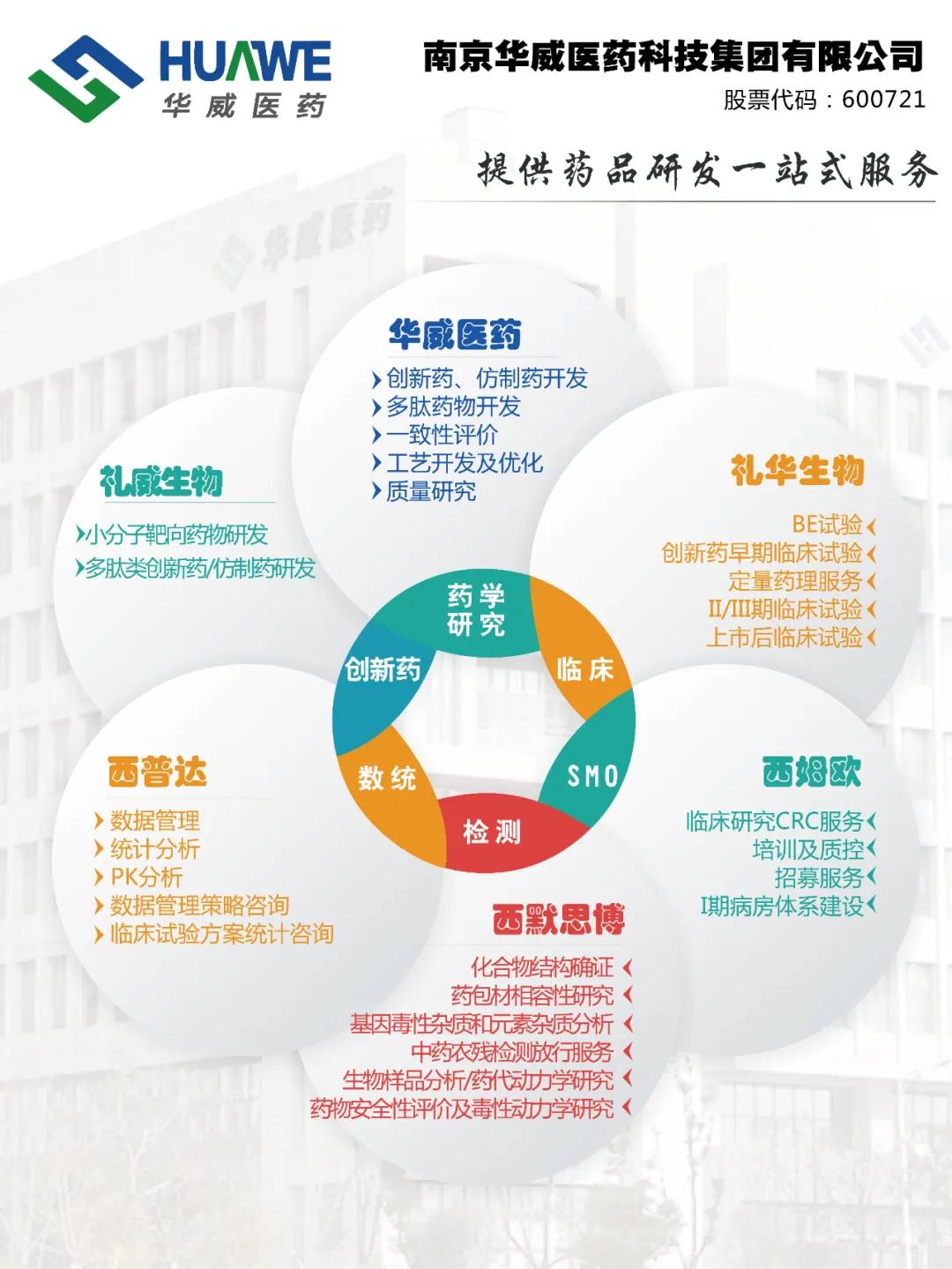 BE/PK 临床)、第三方检测(生物样本分析、包材相容性、基毒杂质分析)等药品研发全流程服务及一体化解决方案的综合性CRO公司。华威医药从初期的药物发现、化学药物、多肽药物研发,再到现今的临床研究资源的整合,生物样本检测团队的构建,成功打造了全流程一体化CRO服务模式。