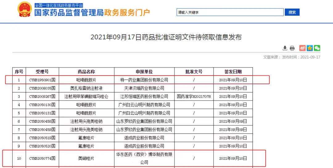 致知力行 踵事增华!国家药品监督管理局正式发布通知,华威医药受特一药业集团股份有限公司委托的吡嗪酰胺片项目正式通过仿制药质量和疗效一致性评价。