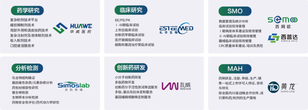 华威医药可为制药企业、研发公司、药品经营企业等客户提供药品研发一站式服务,涵盖了从药品立项咨询、CMC研究、临床CRO、MAH持证与转化等新药、仿制药开发全链条医药产业矩阵。