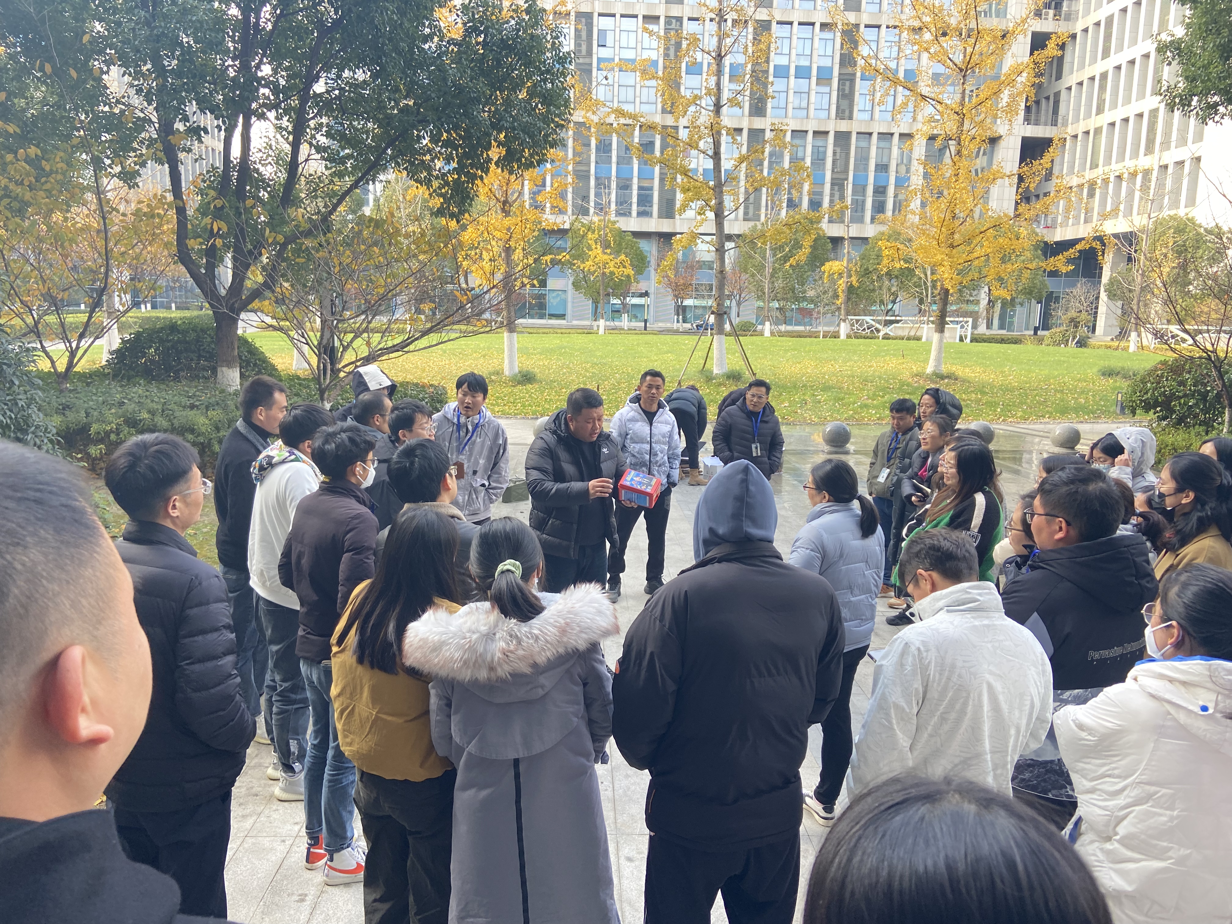 在消防演习环节,培训讲师重点对消防水带、防火面罩、灭火毯以及灭火器等消防安全器材的实际功能以及使用方法进行了细致的讲解。通过现场展示、佩戴以及体验,让小伙伴的防火救灾意识进一步提升。此外,在灭火实操中,员工们积极上场进行实操,轮流使用灭火器对现场小型模拟着火点进行灭火,掌握了消防器材的操作使用方法。