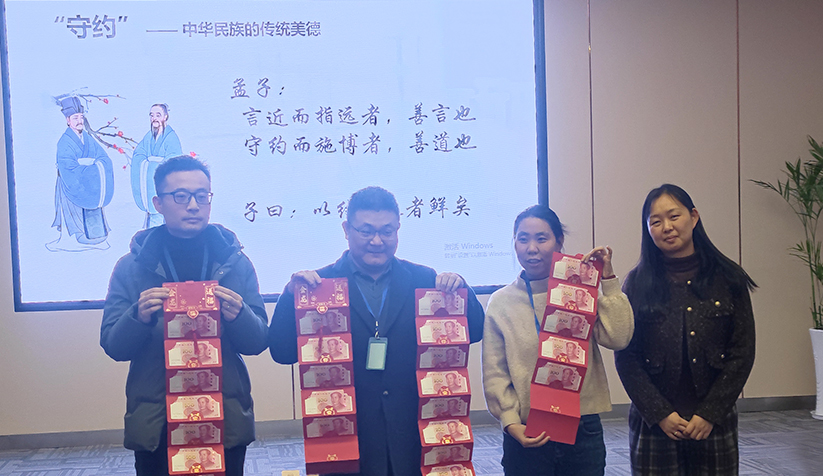 研发六部:从每一位员工的日常行为着手,将守约精神深深根植于企业文化之中,倡导并培养全员将信守承诺转化为一种自然而然的工作习惯,从而在组织内部形成坚实的信任基石和高效的协作氛围,有力地推动企业持续健康发展。