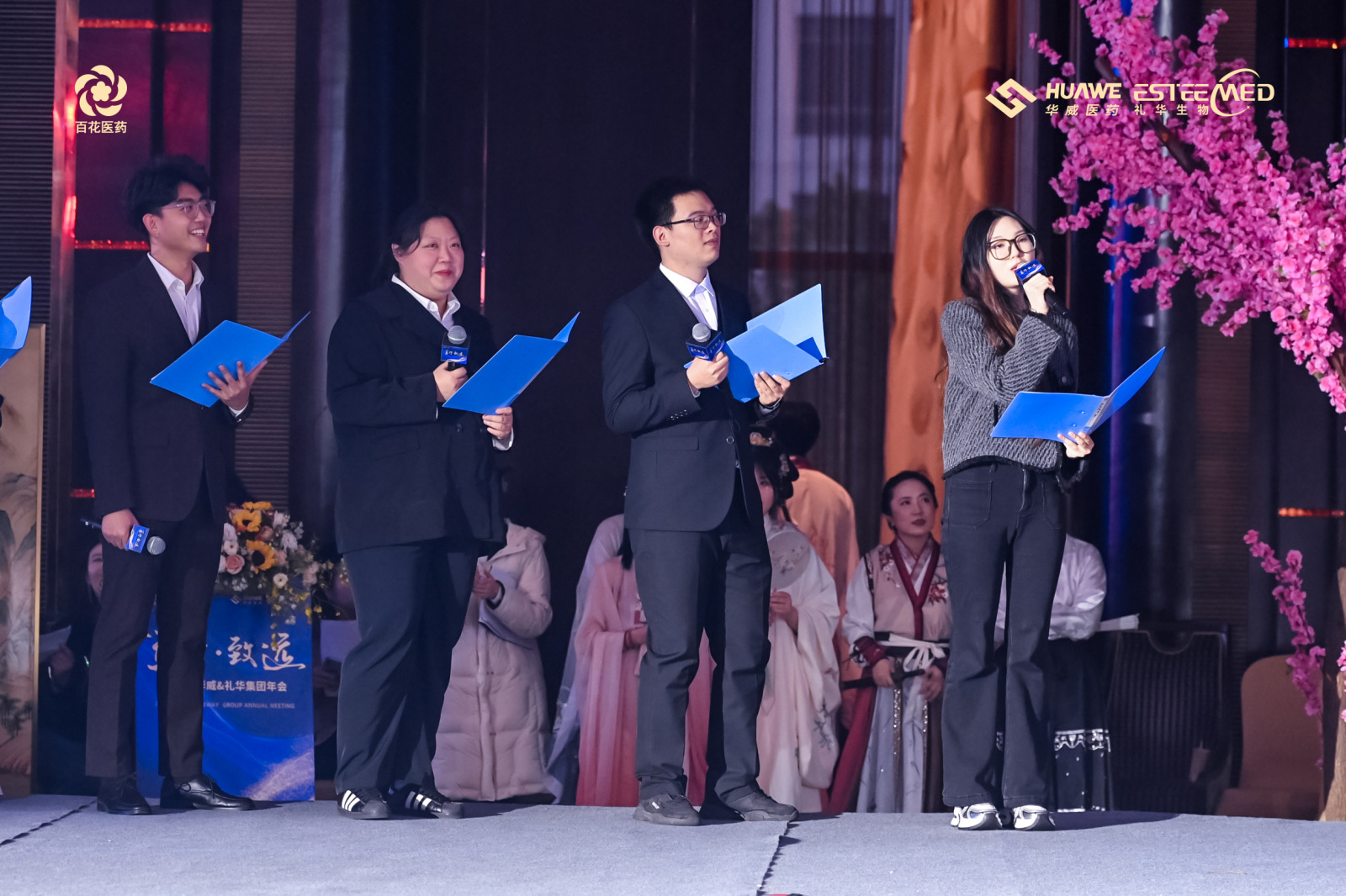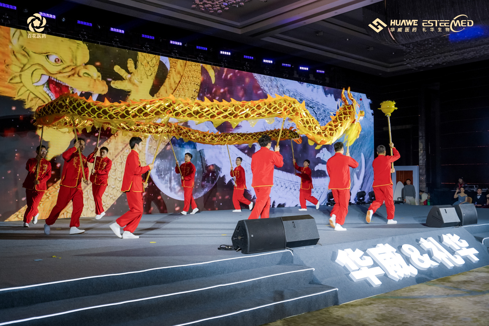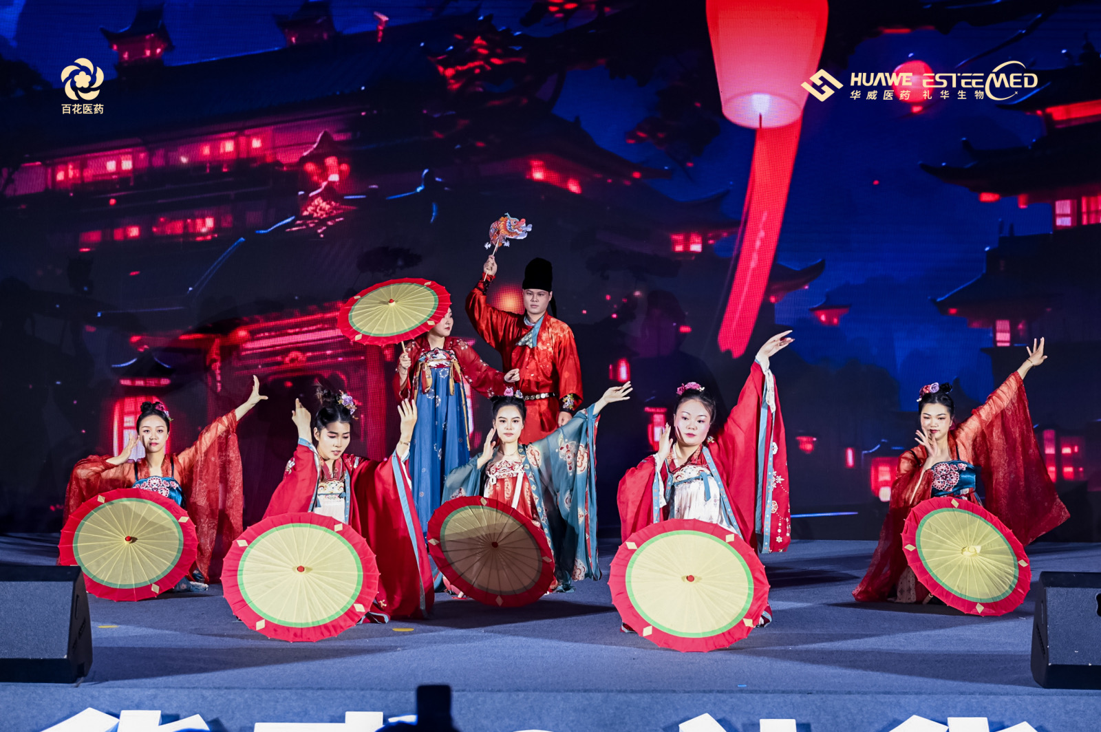 气势恢宏、势如破竹的舞龙开场秀《龙耀九州》、行云流水轻盈翩跹的中华古典舞《百舞惊鸿》、掌握财富密码,让现场氛围感满满的小品《财神来敲我家门》、奔放节奏,曼妙身姿的舞蹈《疆舞飞扬》、用歌曲诉说遥远星河神秘浪漫的独唱《水星记》、将药研故事搬上舞台,以轻松幽默的方式展现工作时光的小品《谁来拯救周末》、青春律动的时尚舞蹈《Miniskrit》、京剧发展下重要里程碑代表作——戏曲《梨花颂》、独具匠心,用声音“描绘”角色的配音秀《公司的那些事》以及以服饰为载体,以走秀为舞台,跨越时空华丽邂逅的走秀《汉风雅韵》,让2024年会上半场的气氛持续沸腾。