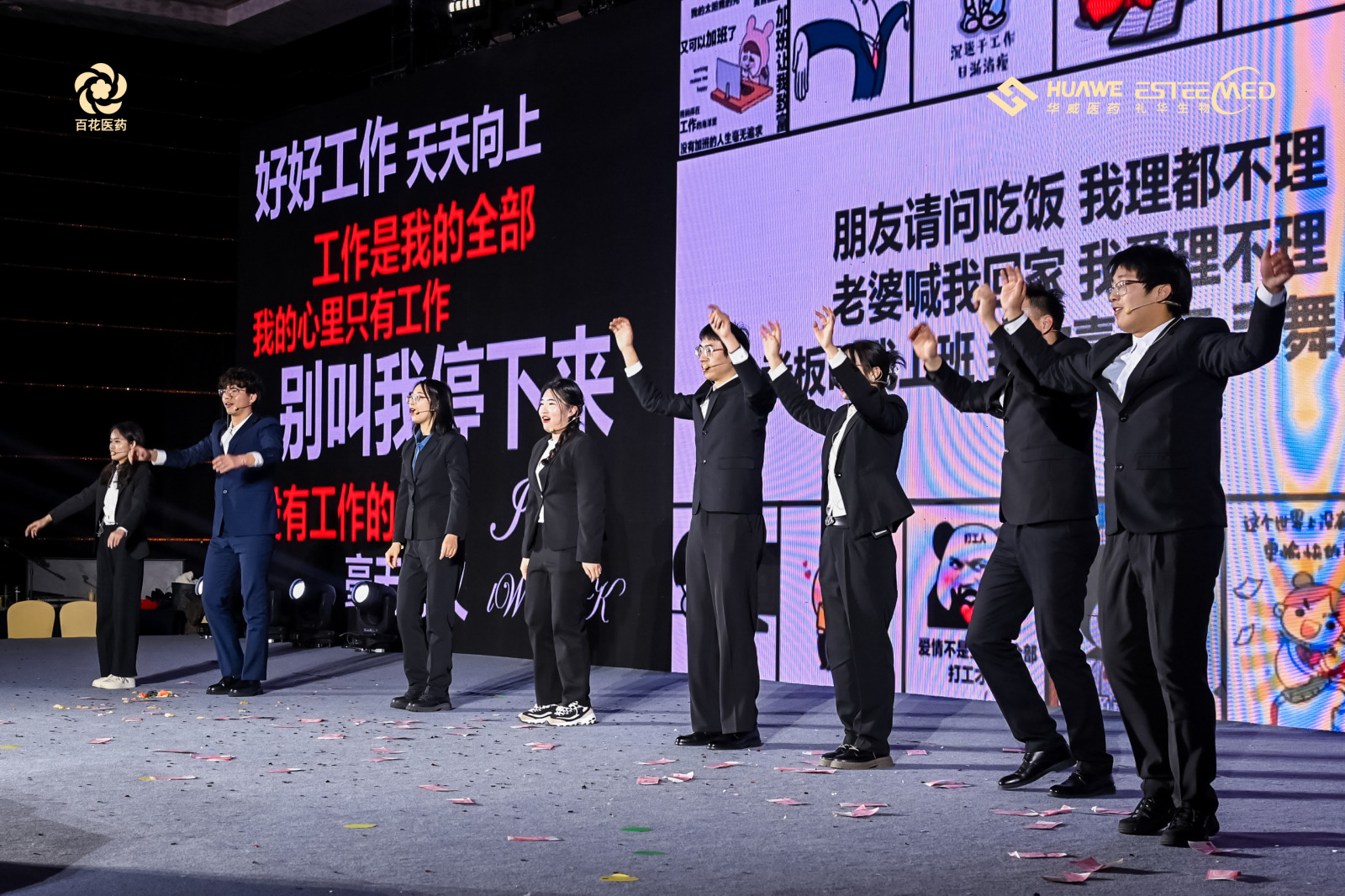 让人捧腹大笑、嗨翻全场的小品《艰难抉择》、用最纯粹的声音诠释对音乐的热爱和执着的歌曲《华威好声音》、全新“黑科技”升级的互联网问诊小品《体检》、活力四射神采飞扬,展示青春活力和激情的舞蹈《Tell me》、寓意着人生旅程中不断奋斗、不懈追求的歌舞《一路生花》、代表研发板块药研心声的朗诵《我爱上班》、凝聚中华民族精神力量与审美意蕴的巾帼传奇舞蹈《刀马旦》、追求生活如同四季一般丰富多彩的歌舞《如愿》以及凸显热爱,不断奋斗向前的歌曲大合唱《倔强》,更让现场的气氛达到顶峰。