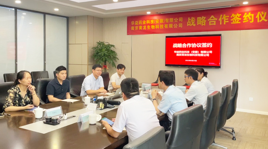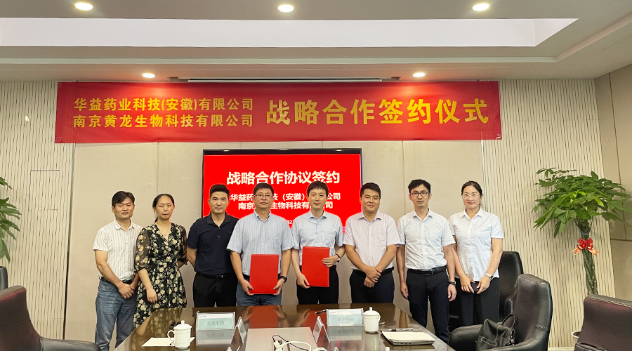 近日,华益药业科技(安徽)有限公司(以下简称华益药业)与南京黄龙生物科技有限公司(以下简称黄龙生物)在南京举行战略合作签约仪式。双方达成共识,通过建立起长期、稳定的战略合作伙伴关系,实现强强联合,发挥各自技术领域与市场资源优势,开创合作共赢新局面。华益药业董事长高煜、国内营销中心总经理周朝逊,华威医药董事长黄辉、黄龙生物总经理许毅等共同出席并见证签约仪式。